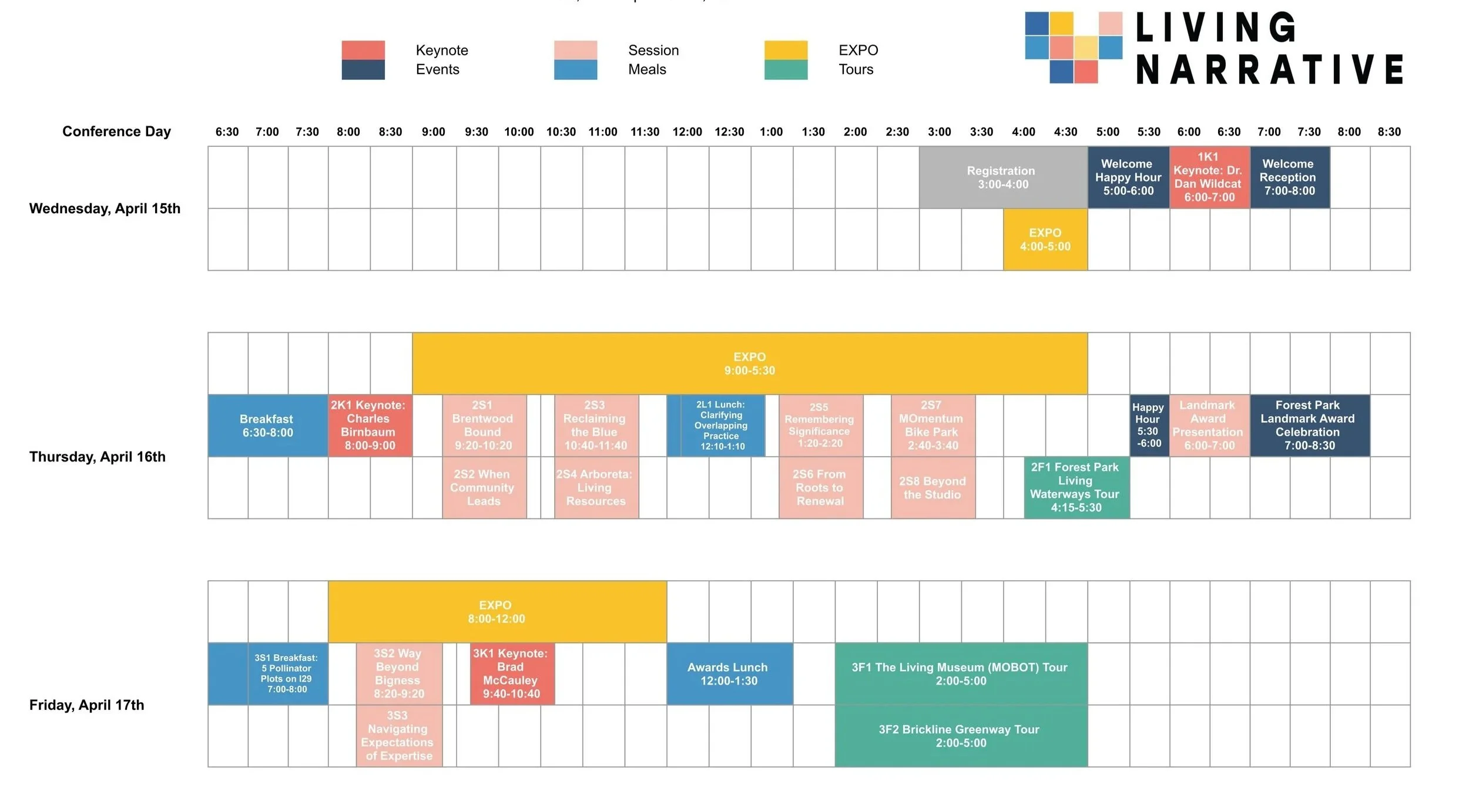 Conference Schedule at a Glance, April 15-17th.